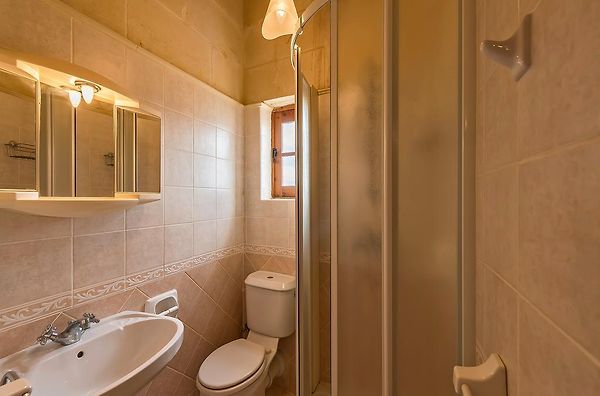 A lovely curved stone staircase leads to the first floor, which has three bedrooms. There are 2 double rooms, and a twin room. Two of these bedrooms lead to a spacious and sunny terrace overlooking the outdoor swimming pool. One of the bedrooms leads onto a separate terrace overlooking the street. All bedrooms have en-suite facilities, fans and air-conditioning, for both cold air and heat. All bedrooms could easily accommodate a cot, if required. Wi-Fi is available throughout.